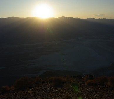 Direction Zabriskie point , où la lumière rasante offrait de beaux reliefs et de belles couleurs… Puis nous avons engagé une course effrénée avec le soleil  pour Dante’s view un point de vue époustouflant  sur la vallée de la mort… Et nous avons gagné à l’arraché : 20mn de pur spectacle, un silence sourd, pas un bruit jusqu’au dernier rayon, et nous avons vécu le réveil des grillons. Je vous passerai tout l’imaginaire que l’on peut vivre à cet instant, des caravanes traversant le désert.. juste quelques images pour illustrer.