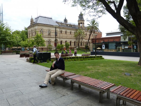 Nous découvrons Adelaide qui est réputée pour être la ville des églises et effectivement il y en a un paquet, et la ville de la tolérance et de l’égalité sociale (d’ailleurs petite anecdote : un sdf nous a suivi dans notre hôtel un soir et s’est installé sur la terrasse de l’hôtel, on en a touché un mot au patron parce qu’on n’était pas sûres qu’il l’avait vu mais il nous a rassuré aussitôt en nous expliquant que c’est une personne sans domicile un peu agée donc il le laisse venir s’installer vu qu’il n’y a pas trop de monde.. !).