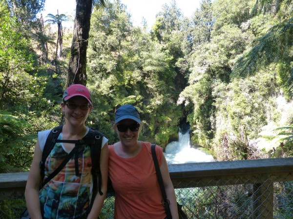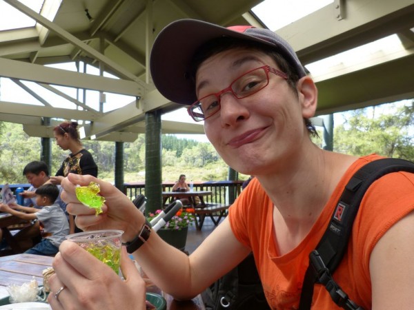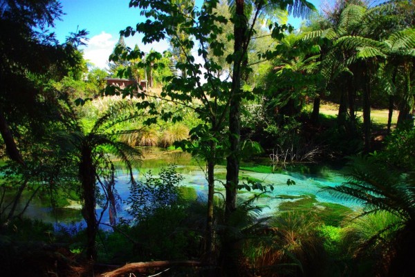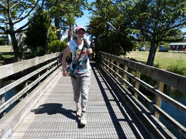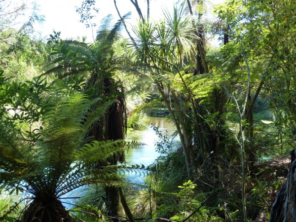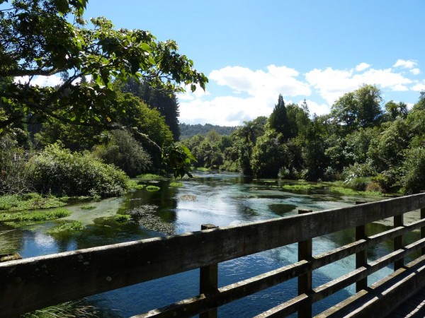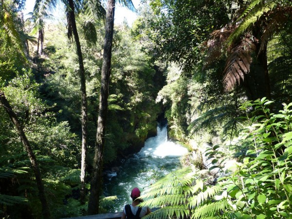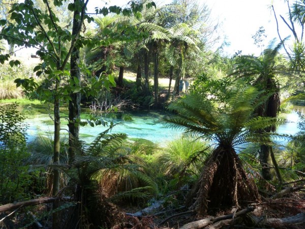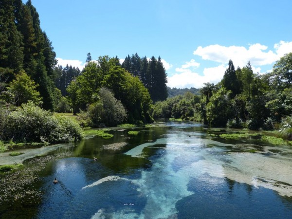 Sur la route, nous nous sommes arrêtées à Okere Falls, des chutes d’eaux nichées dans la forêt, à une courte distance de marche. On s’est ensuite fait un petit picnic sur la route avant de s’attaquer à Hamurana Springs. Cette marche nous a subjuguée.. ! On marche près d’une rivière si claire et pure.. ! par endroit, elle est bleue turquoise, puis on arrive dans une forêt de gigantesques arbres centenaires, et on respire .. ! Avec tant de soleil, on se sent bien dans cet abri naturel. Pour le final, on débouche sur le bout de la rivière ou l’on peut observer l’activité volcanique : des bulles se forment à la surface de l’eau, provenant d’une cheminée souterraine par laquelle l’eau met 70 ans à parvenir depuis le plateau « Mamaku ». C’est beau. En repartant, on tombe sur les « dancing sands » (les sables dansants) ou l’activité dans le sol de la rivière fait danser le sable sous nos yeux (vous n’avez plus qu’à imaginer car les photos ne rendent pas ce que l’on a vu).