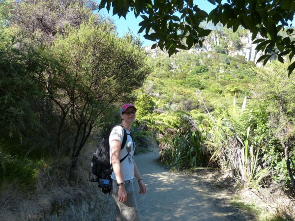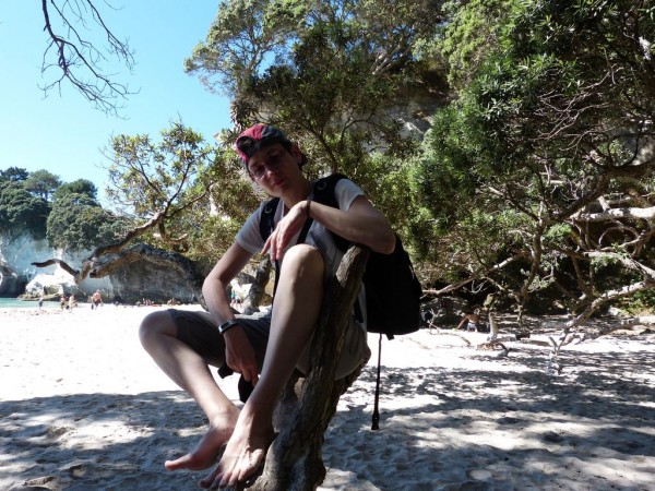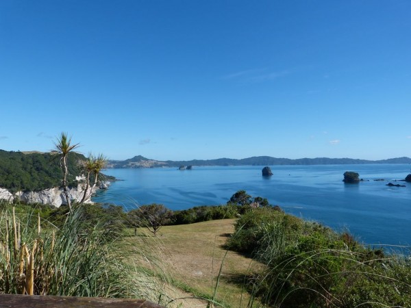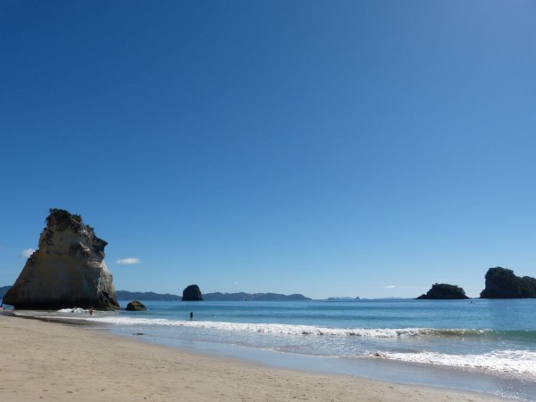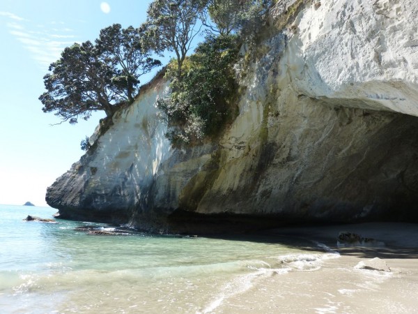 Le lendemain matin, départ pour les cathedral coves. Une petite heure de randoche pour échouer au bord de la mer et passer sous la voute rocheuse devant une mer translucide. Et les maillots sont restés dans le van… dommage…nous goûtons la mer du bout des pieds.