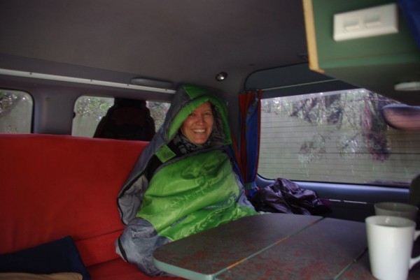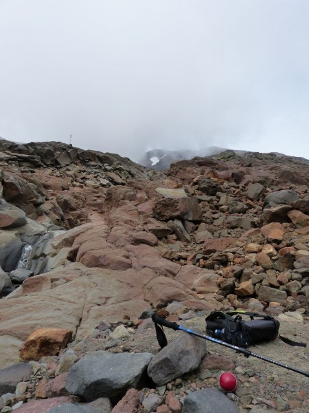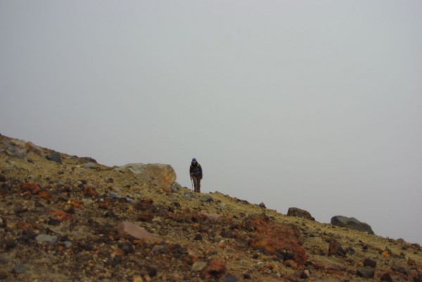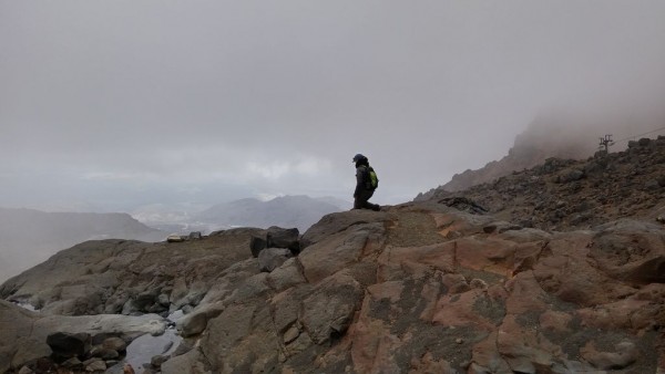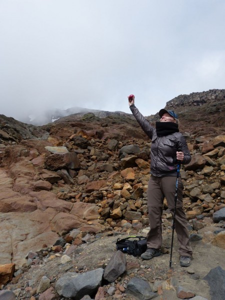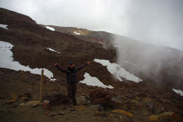 Nous atteignons enfin Wakapapa village pour passer la nuit et ascensionner le mont ruapehu. Nous nous exécutons le lendemain dans une randonnée qui nous offre une vue dans les nuages (donc pas de vue du tout) mais c’est pas grave c’est l’intention qui compte (et c’est sportif!) 🙂