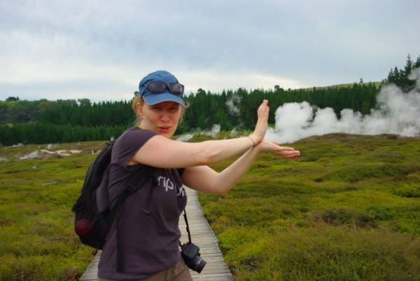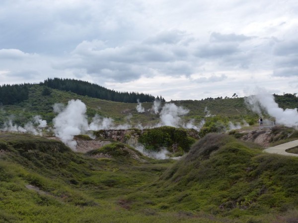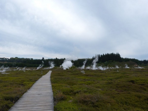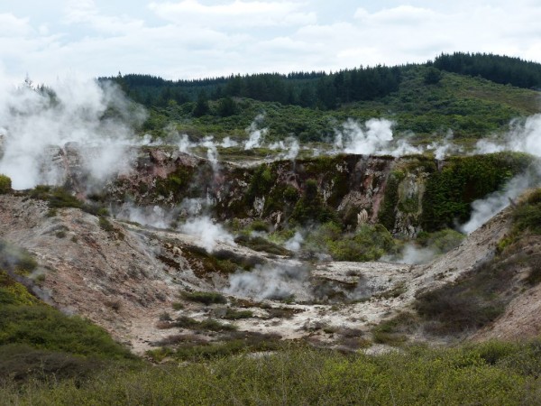 Nous quittons Rotorua la sulfureuse… Cette ville sent le soufre. On a une odeur d’oeuf pourri dès que l’on sort le bout de notre nez. Même Virginie qui n’a absolument pas d’odorat est incommodée par les effluves. C’est dire !