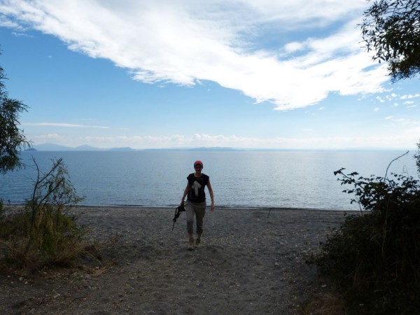 Nous reprenons ensuite la route en longeant le lac Taupo qui n’est autre que the volcan de la nouvelle zelande avec du sable gris. C’est en fait un cratère rempli d’eau et considéré comme le plus explosif de nouvelle zélande, bref faudrait pas qu’il se réveille quoi.
